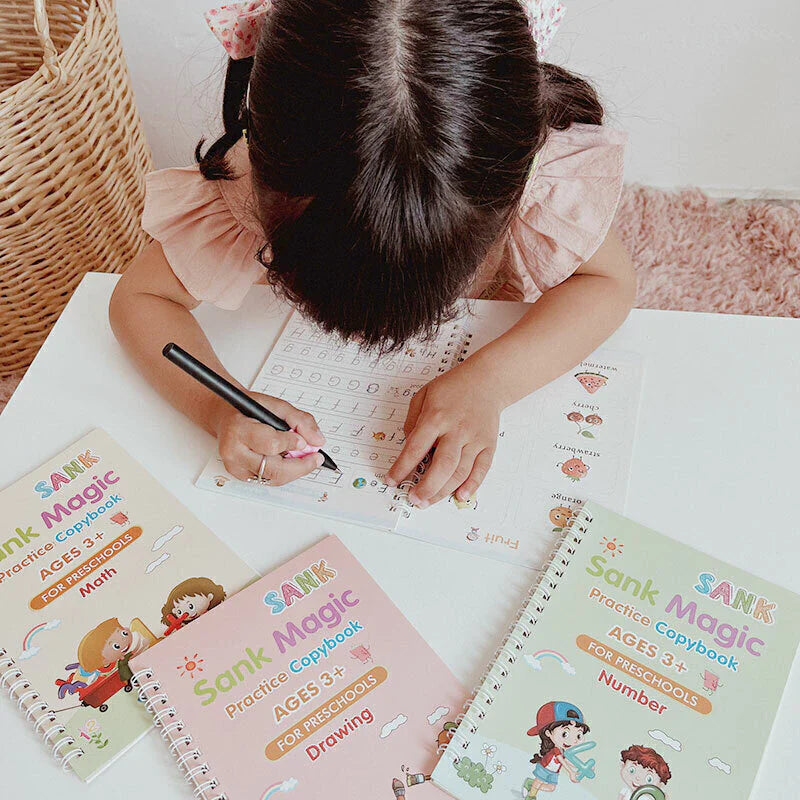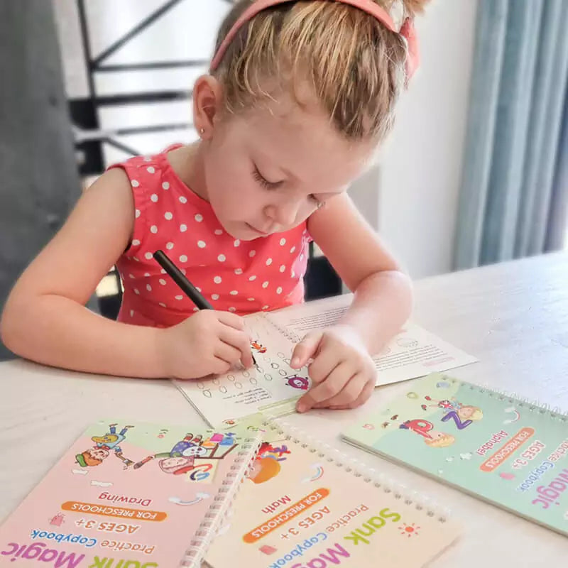 Los niños se cansan rápido de los cuadernos normales… pero con el Magic Book de caligrafía, estudiar se vuelve un juego.
