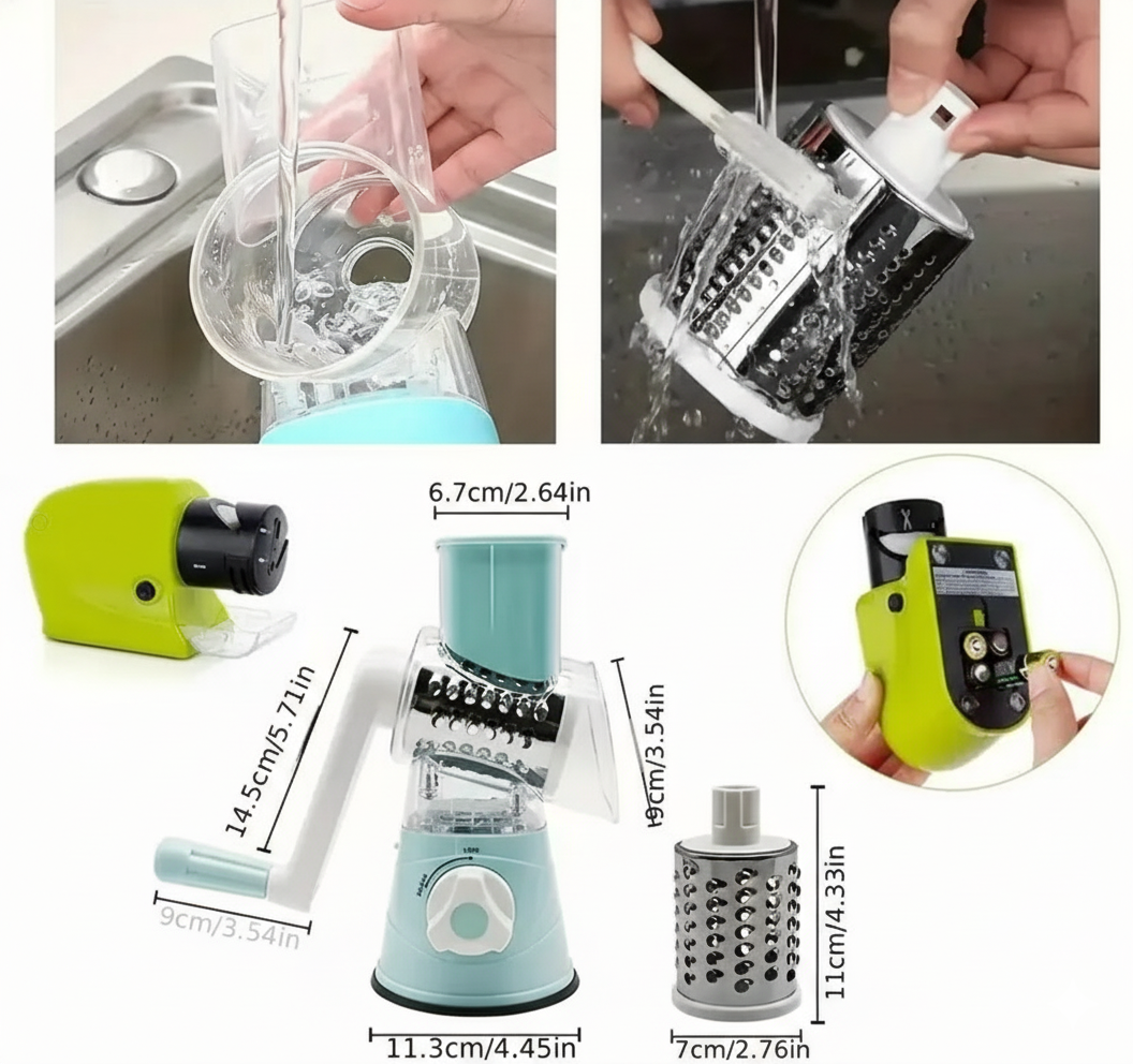 No necesitás ser chef para dejar todo uniforme — esta máquina hace el trabajo más rápido y con menos desorden. Muchos lo usan para ensaladas, sopas, verduras salteadas y hasta papas para freír. Y el afilador eléctrico lo amás desde el primer uso: solo presionás el botón, el motor gira y afila por vos.Sirve para cuchillos grandes, pequeños y hasta tijeras.